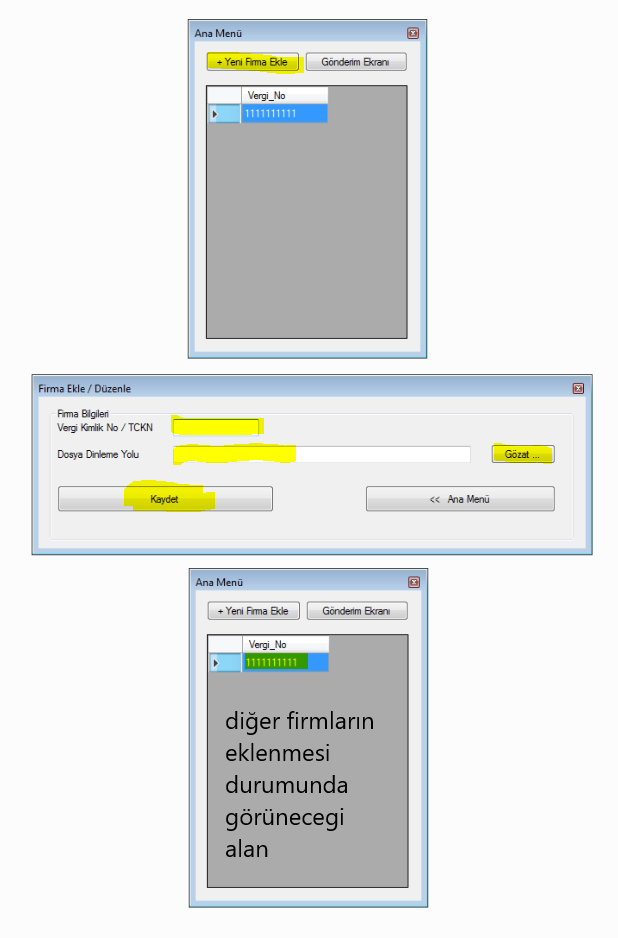 VKN/TCKN tanımı yapılmayan firmaların verilerinin saklamaları yapılamaz.