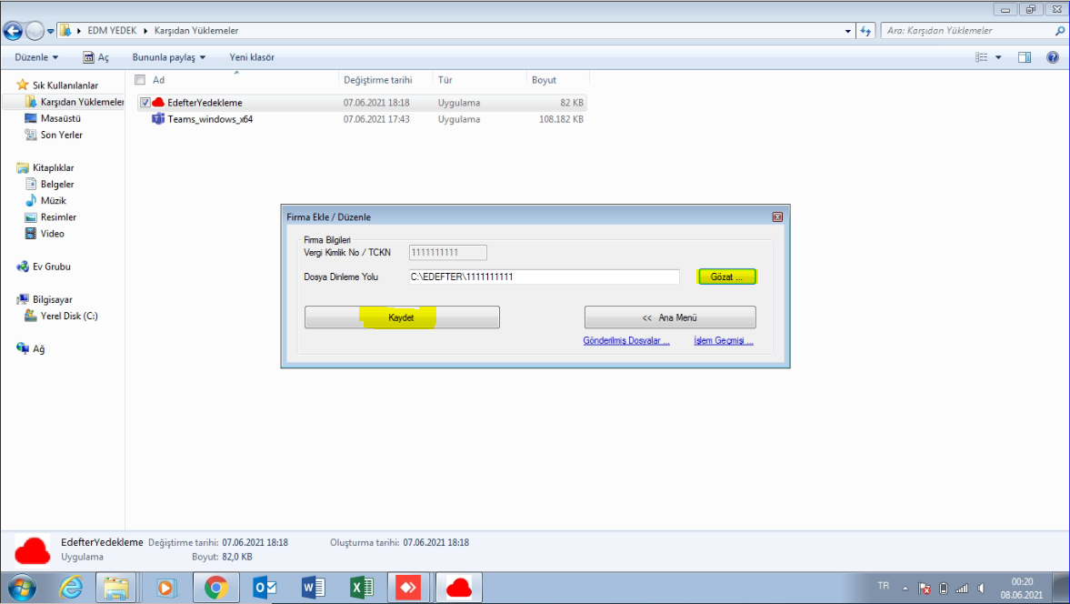E-DEFTER YEDEKLEME programı Windows Başlangıç programları arasında yer alıp her açılışta otomatik çalışacaktır.