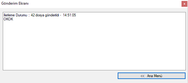 “Gönderim Ekranı” penceresinde verilerinizin EDM BİLİŞİM DANIŞMANLIK HİZMETLERİ A.Ş sunucularına aktarım durumlarını görebilirsiniz , ilk kurulumda kayıt yapıldıktan sonra belirtilen klasördeki verileri sistem almaya başlayacaktır. “Resim3” görseli ile aşağıda örnek başarılı bir aktarım gösterimi yapılmıştır.